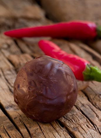 En kraftfull og intens mørk sjokolade som er smakssatt med noe chili og salt. Sjokoladen er trukket med en søt sjokolade som avrunder smaken.
