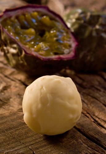 Et friskt og fruktig sjokoladefyll smelter i munnen. Det hvite sjokoladetrekket er sødmefylt og har en smak av vanilje.
