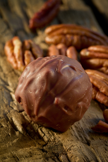 Karamellisert pecan-nøtt med gourmet fingersalt og lys sjokolade. Her er det smakskontraster med knekk og salt og knasende biter av nøtter.
